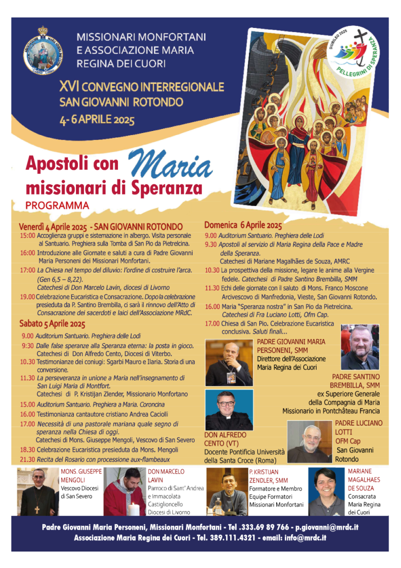 XVI° Convegno Monfortano: "Apostoli con Maria, Missionari di Speranza"